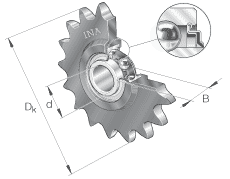 - 鏈傳動(dòng)惰輪輪齒單元作為組合型號(hào)的例子 KSR15-B0-06-10-20-08 KSR 鏈傳動(dòng)惰輪輪齒單元 15 軸承內(nèi)徑 B0 帶偏心套的外球面球軸承, 系列 RAE..-NPP 06 惰輪節(jié)圓 1/16