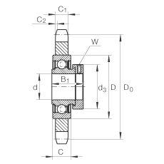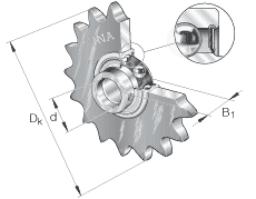 - 鏈傳動惰輪輪齒單元作為組合型號的例子 KSR15-B0-06-10-20-08 KSR 鏈傳動惰輪輪齒單元 15 軸承內徑 B0 帶偏心套的外球面球軸承, 系列 RAE..-NPP 06 惰輪節(jié)圓 1/16