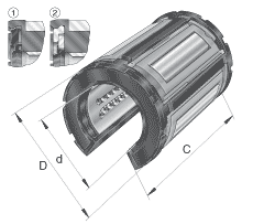 - 基本額定載荷僅適用于淬硬(670+170 HV)及磨削過的作為滾道的軸 基本額定載荷根據(jù) ISO/CD 14 728-1 (最小值)