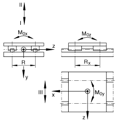 - 基本額定載荷:載荷方向 Z III: 當(dāng)載荷均勻分布在四個(gè)直線球軸承上的基本額定載荷。 基本載荷和扭矩不能同時(shí)增加。