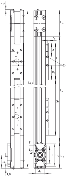 - L2 = 總行程 + L + 40 L tot = 總行程 + L + 40 + 2 x L4。 總行程= 有效行程 + 2 x S(mm)。 注意:允差S指一個安全范圍,至少應為40 mm。 最大支撐軌長度2000 mm ;通過協商可提供更長的支撐軌