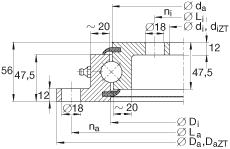 - 適用于帶定心套的軸承(后綴 ZT) 定心套長度(見零件圖) 公差:-IT8