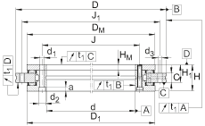 - 注意! H 和 H1 比標準YRT軸承高1mm。